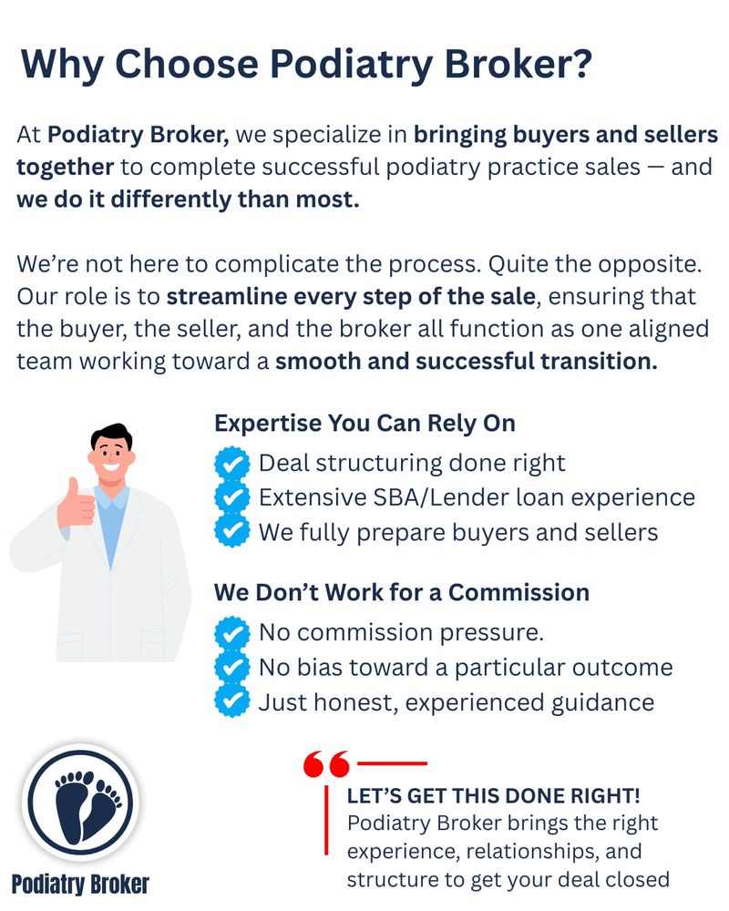 Podiatry Broker has many MOTIVATED SELLERS looking to MAKE A DEAL with the RIGHT BUYER!